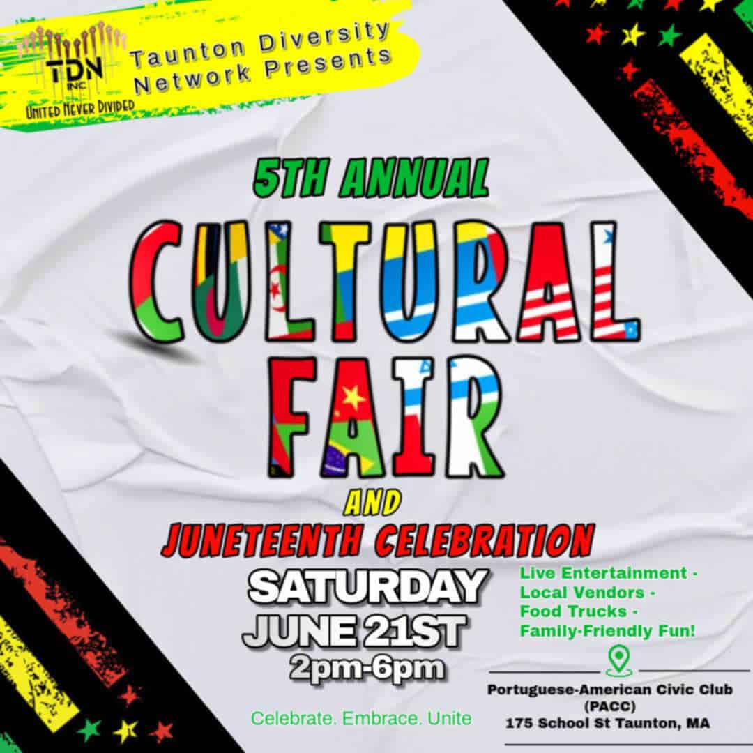 The Cultural Fair celebrates the various cultures that exist in Taunton and includes retail vendors, dance performances, cultural performances, music, vendors, and food.