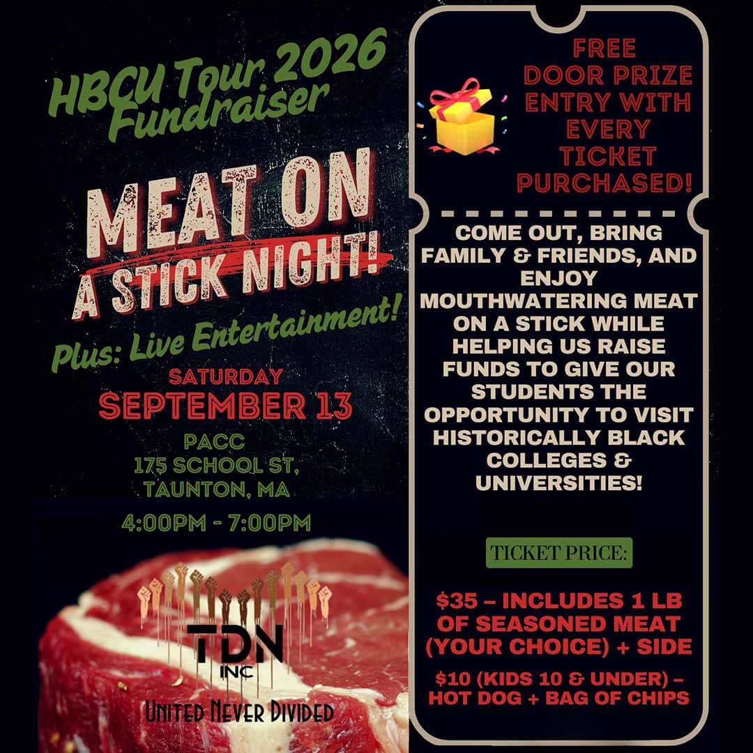 Come out, bring family and friends, and enjoy mouthwatering meat on a stick while helping us raise funds to give our students the opportunity to visit historically black colleges and universities.